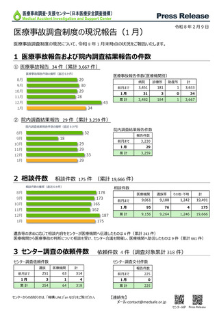 医療事故調査制度の現況報告(1月)