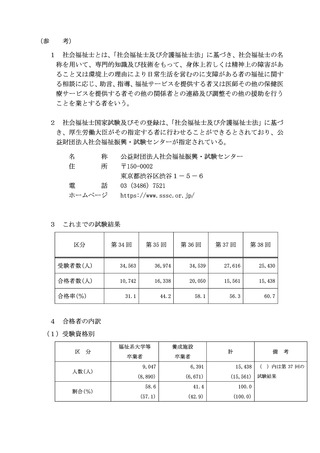 | 出典情報 | 第38回 社会福祉士国家試験合格発表(3/3)《厚生労働省》 |