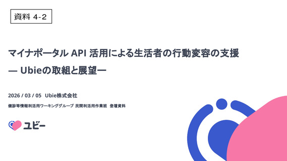 【資料4ー2】 Ubie株式会社 マイナポータルAPI 活用による生活者の行動変容の支援― Ubieの取組と展望 ―