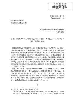 資料2-6 患者向医薬品ガイド(必須版)及びワクチン接種を受ける人へのガイド(必須版)の作成について[949KB]
