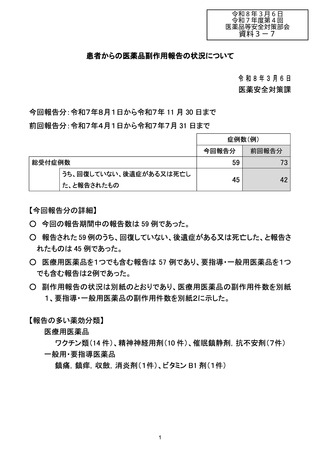 | 出典情報 | 薬事審議会 医薬品等安全対策部会(令和7年度第4回 3/6)《厚生労働省》 |