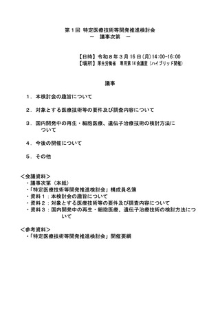【議事次第】第1回特定医療技術等開発推進検討会