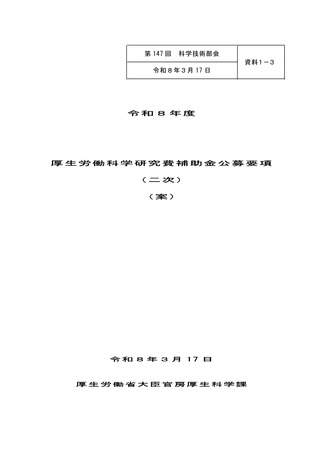【資料1-3】令和8年度 厚生労働科学研究費補助金公募要項(二次)(案)