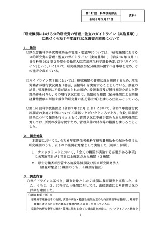 【資料4】「研究機関における公的研究費の管理・監査のガイドライン(実施基準)」に基づく令和7年度履行状況調査の結果について