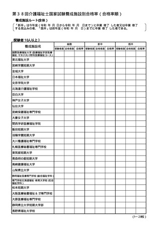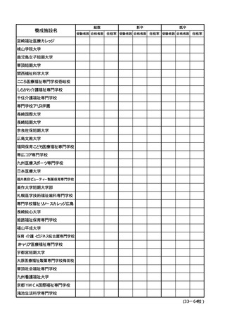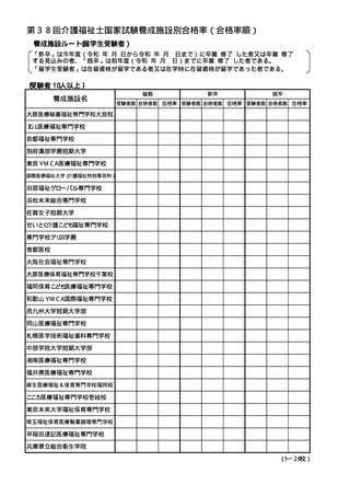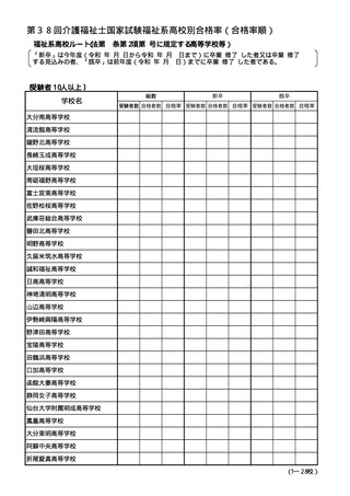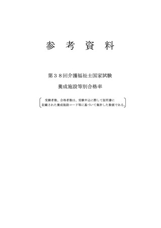 (参考資料)第38回介護福祉士国家試験 養成施設等別合格率
