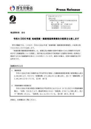 令和6(2024)年度地域保健・健康増進事業報告の概況 報道発表資料
