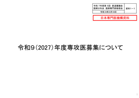 資料1-1 令和9(2027)年度専攻医募集について(日本専門医機構資料)