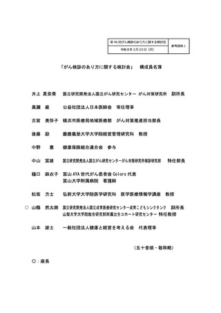 参考資料1「がん検診のあり方に関する検討会」構成員名簿