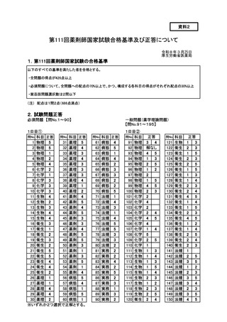 2.第111回薬剤師国家試験合格基準及び正答について