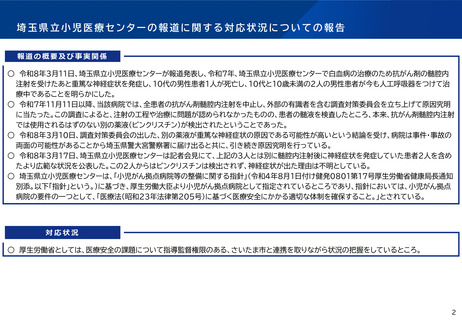 資料4 埼玉県立小児医療センターの報道に関する対応状況について(報告)