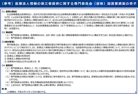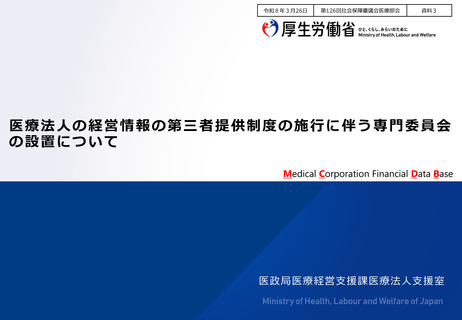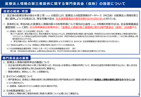 資料3 医療法人の経営情報の第三者提供制度の施行に伴う専門委員会の設置について