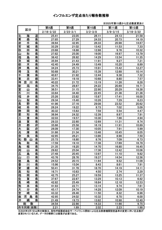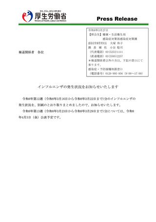 | 出典情報 | インフルエンザの発生状況について(3/27)《厚生労働省》 |