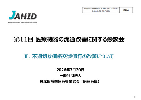 | 出典情報 | 医療機器の流通改善に関する懇談会(第11回 3/30)《厚生労働省》 |