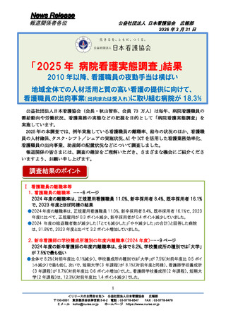 | 出典情報 | 「2025年 病院看護実態調査」結果(3/31)《日本看護協会》 |