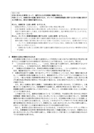 | 出典情報 | 医業若しくは歯科医業又は病院若しくは診療所に関する広告等に関する指針(医療広告等ガイドライン)(3/30)《厚生労働省》 |