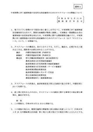 資料1 中東情勢に伴う重要物資の安定的な供給確保のためのタスクフォースの開催について