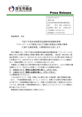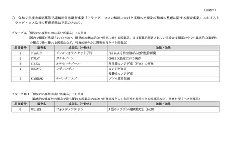 令和7年度未承認薬等迅速解消促進調査事業「ドラッグ・ロスの解消に向けた実態の把握及び情報の整理に関する調査事業」の整理結果を公表します