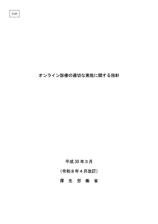 | 出典情報 | オンライン診療の適切な実施に関する指針(平成30年3月)(令和8年4月一部改訂)(4/2)《厚生労働省》 |