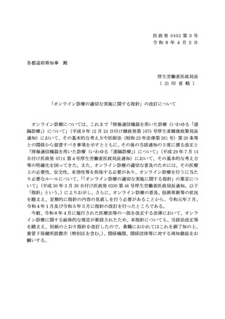 「オンライン診療の適切な実施に関する指針」の改訂について