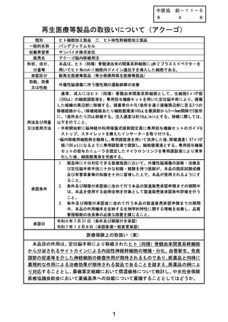 総-11-5再生医療等製品の医療保険上の取扱いについて(アクーゴ)
