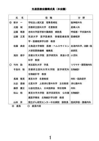 先進医療会議構成員等名簿[382KB]