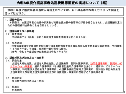 【資料1】令和8年度介護従事者処遇状況等調査の実施について(案)