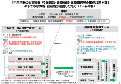 | 出典情報 | 中東情勢の影響を受ける医薬品、医療機器、医療物資等の確保対策本部(第2回 4/9)《厚生労働省》 |