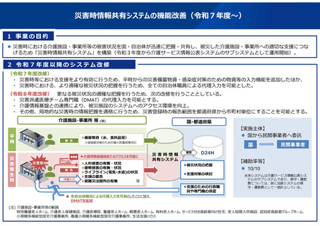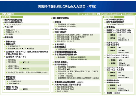 | 出典情報 | 介護施設・事業所等における災害時情報共有システムに係る 平時における物資の備蓄状況等報告機能の追加について(4/13付 通知)《厚生労働省》 |