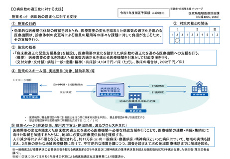 | 出典情報 | 令和8年度(令和7年度からの繰越分) 病床数適正化緊急支援事業の実施について(4/8付 通知)《厚生労働省》 |