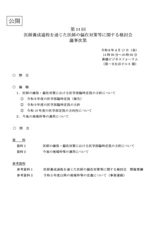 | 出典情報 | 医師養成過程を通じた医師の偏在対策等に関する検討会(第14回 4/17)《厚生労働省》 |