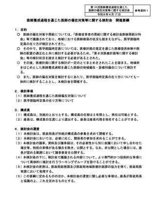 参考資料1 医師養成過程を通じた医師の偏在対策等に関する検討会 開催要綱