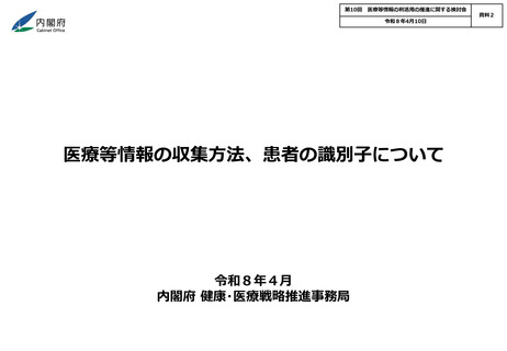 | 出典情報 | 医療等情報の利活用の推進に関する検討会(第10回 4/10)《内閣府》 |