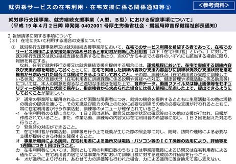 参考資料5 就労移行支援事業、就労継続支援事業(A型、B型)における在宅支援の要件遵守の徹底について