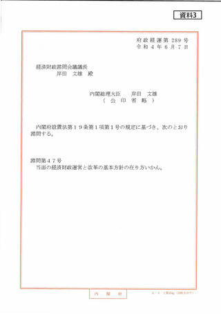 資料3 内閣総理大臣からの諮問第47号について