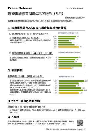 医療事故調査制度の現況報告(5月)