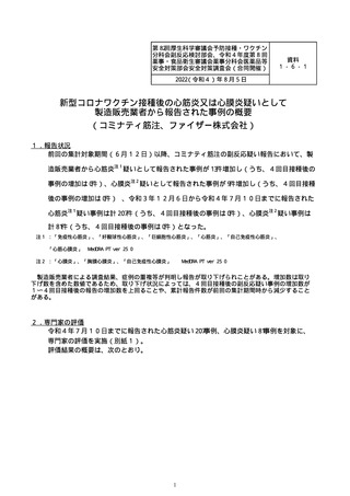 資料1-6-1 新型コロナワクチン接種後の心筋炎又は心膜炎疑いとして報告された事例の概要(コミナティ筋注)