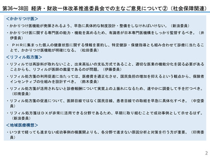 参考資料2:最近の経済・財政一体改革推進委員会での主なご意見(事務局提出資料)