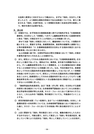 参考資料7 「ヒト胚の取扱いに関する基本的考え方」見直し等に係る報告(第三次)~研究用新規胚の作成を伴うゲノム編集技術等の利用について~(令和4年2月1日総合科学技術・イノベーション会議)