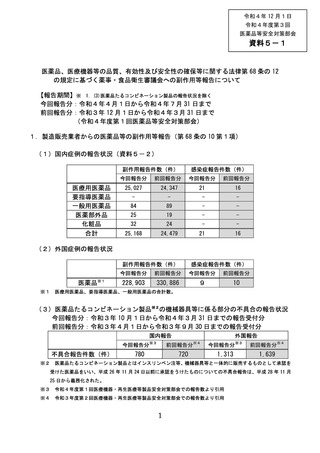 資料5-1 医薬品、医療機器等の品質、有効性及び安全性の確保等に関する法律第68条の12の規定に基づく薬事・食品衛生審議会への副作用等報告について