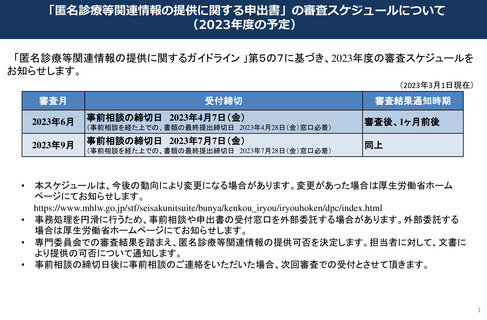 (資料3)「匿名診療等関連情報の提供に関する申出書」の審査スケジュールについて