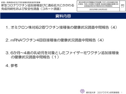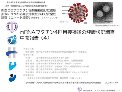 資料1-7 新型コロナワクチン追加接種並びに適応拡大にかかわる免疫持続性および安全性調査(コホート調査)・オミクロン株対応2価ワクチンの追加接種にかかわる免疫持続性および安全性調査(コホート調査)・オミクロン株対応2価ワクチン接種後の健康状況調査中間報告(4)・mRNAワクチン4回目接種後の健康状況調査中間報告(4)・6か月~4歳の乳幼児を対象としたファイザー社ワクチン追加接種後の健康状況調査中間報告(1)