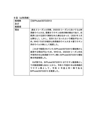 資料2-1 令和5年度インフルエンザワクチン用製造株とその推奨理由