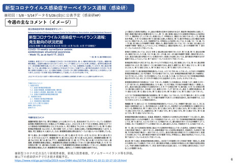 | 出典情報 | 新型コロナウイルス感染症の5類感染症移行後に備えた患者の発生動向等の把握の準備 について(依頼)(令和5年4月27日一部改正)(4/27付 通知)《厚生労働省》 |